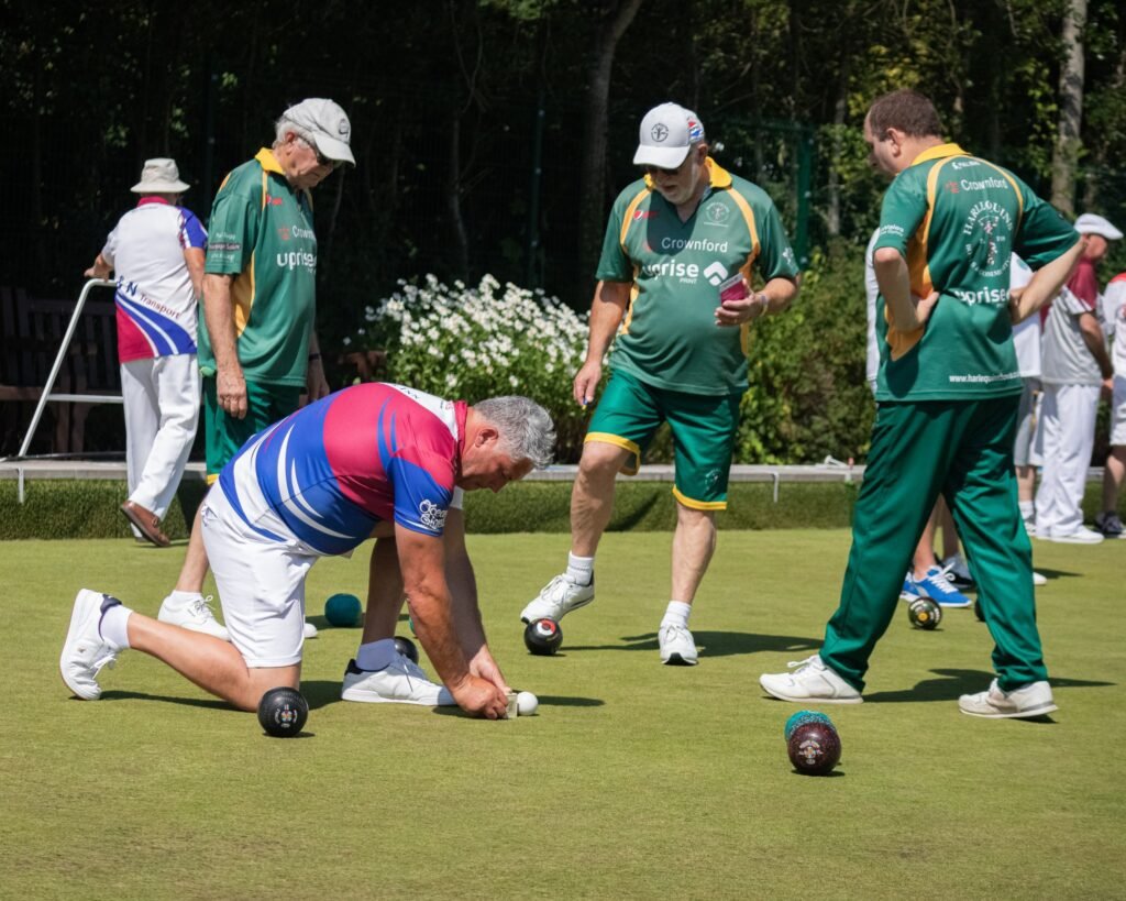 Many players find an aiming point on or near the front ditch. they will have worked this out during trial ends, and may adjust their aiming point during the game as conditions change, or a wider or tighter line is needed for a certain shot. Don’t have an aiming point that is movable, such as a bag or a person. A bench leg or pot plant is fine.